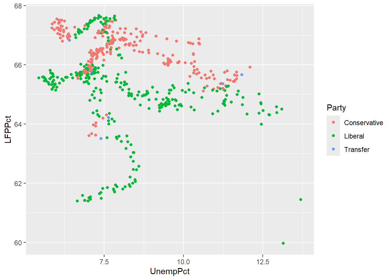## # ℹ 5 more variables: UnempRate <dbl>, LFPRate <dbl>, Party <chr>,